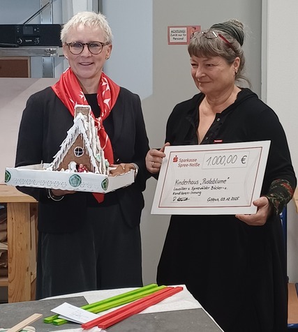 Am 09. Dezember war es dann so weit und die Innungsobermeisterin konnte die Spende in Höhe von 1.000,00 € an Frau Verzino, Leiterin der Spendenbetreuung des Kinderhauses Pusteblume, übergeben. Und passend zur Jahreszeit gab es noch ein buntes und süßes Lebkuchenhaus von der Innungsobermeisterin dazu.