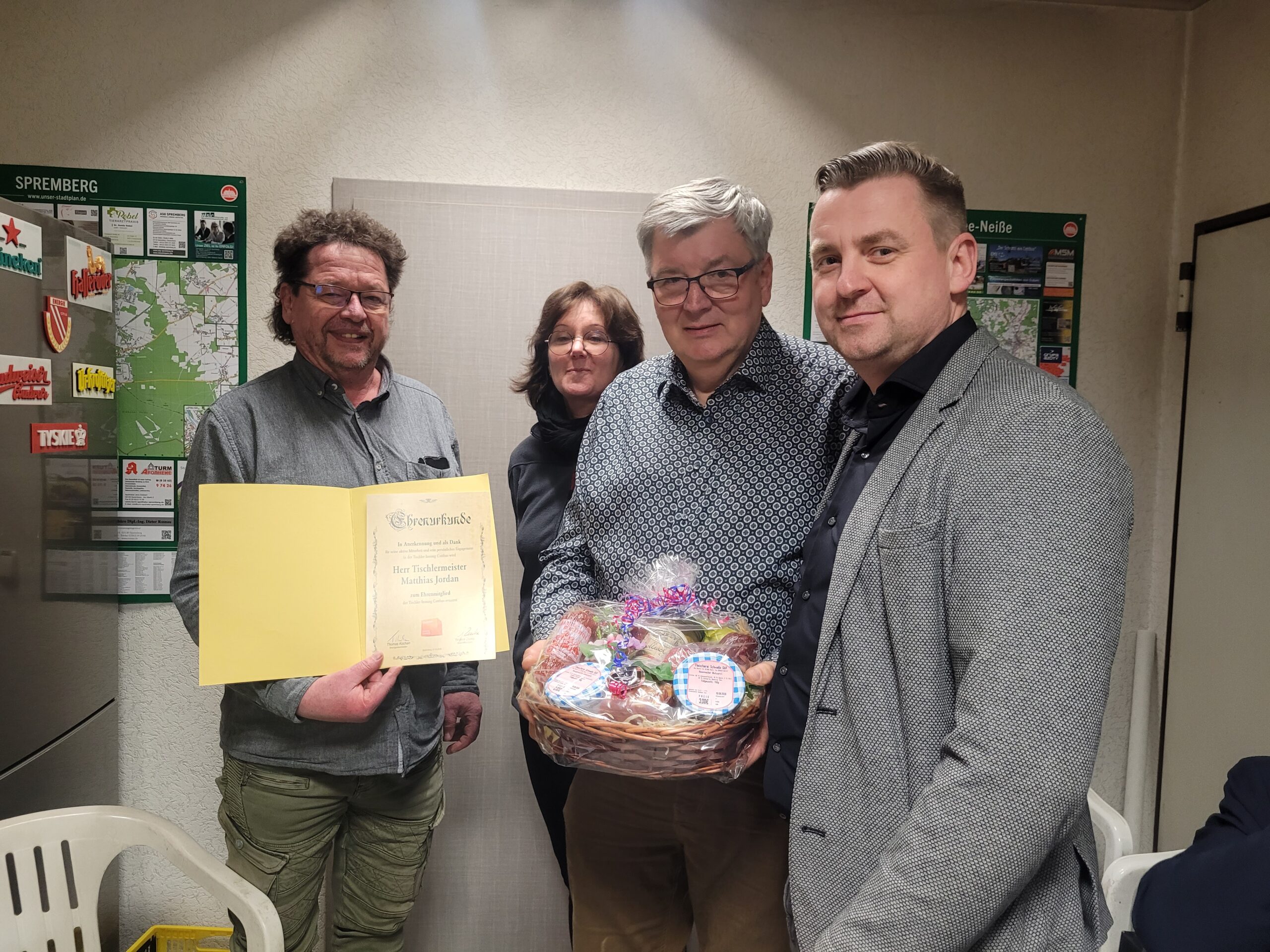Ebenfalls einstimmig erfolgte der Beschluss der Mitglieder zur Ehrenmitgliedschaft von Matthias Jordan. Die Übergabe der Ehrenurkunde und eines kleinen Präsents sowie die Dankesworte durch den Kreishandwerksmeister waren ein emotionaler Moment, denn in den 12 Jahren als Innungsobermeister hat Herr Jordan die Innung gut durch alle Höhen und Tiefen geführt und die Innung steht solide da.